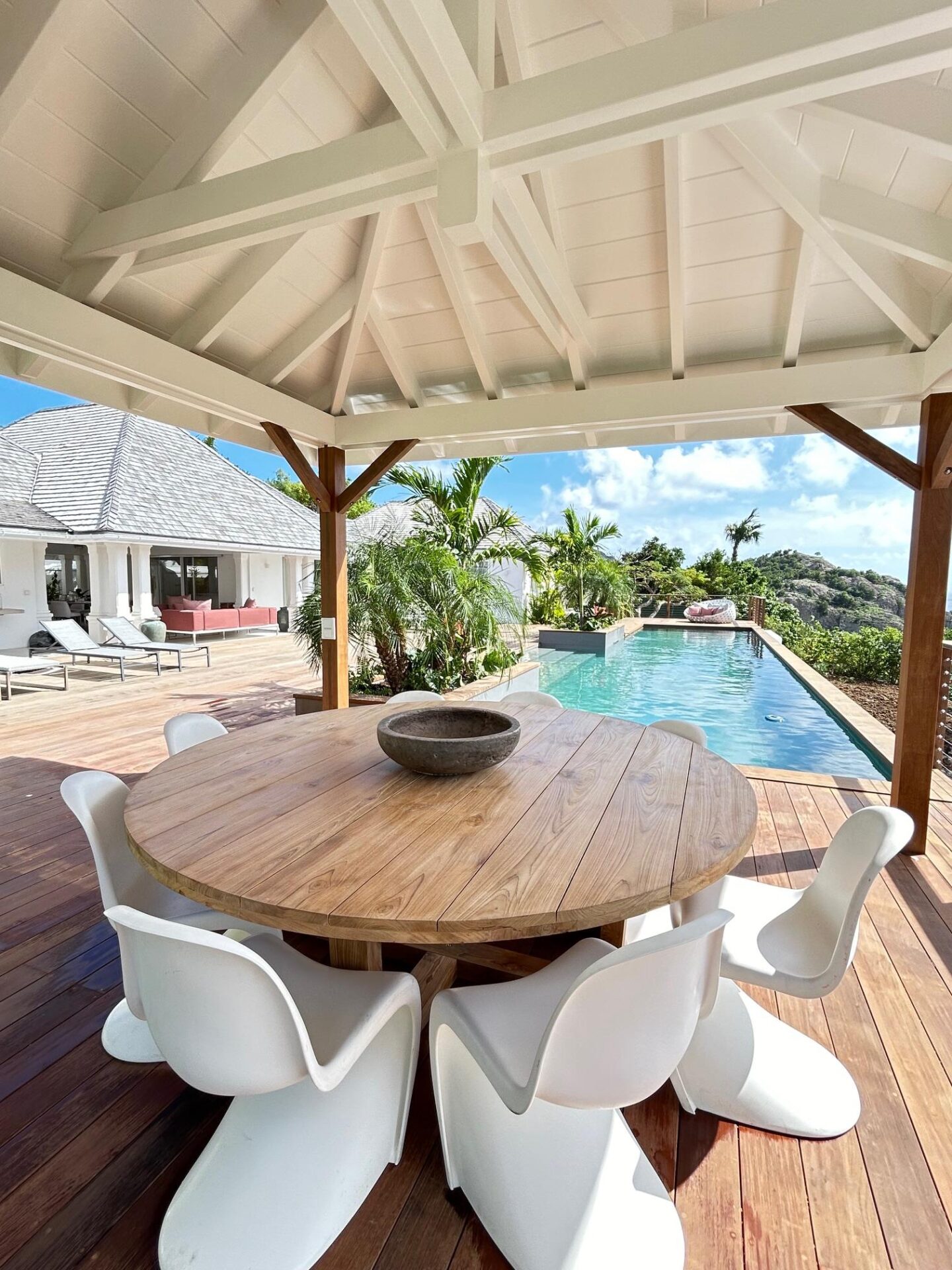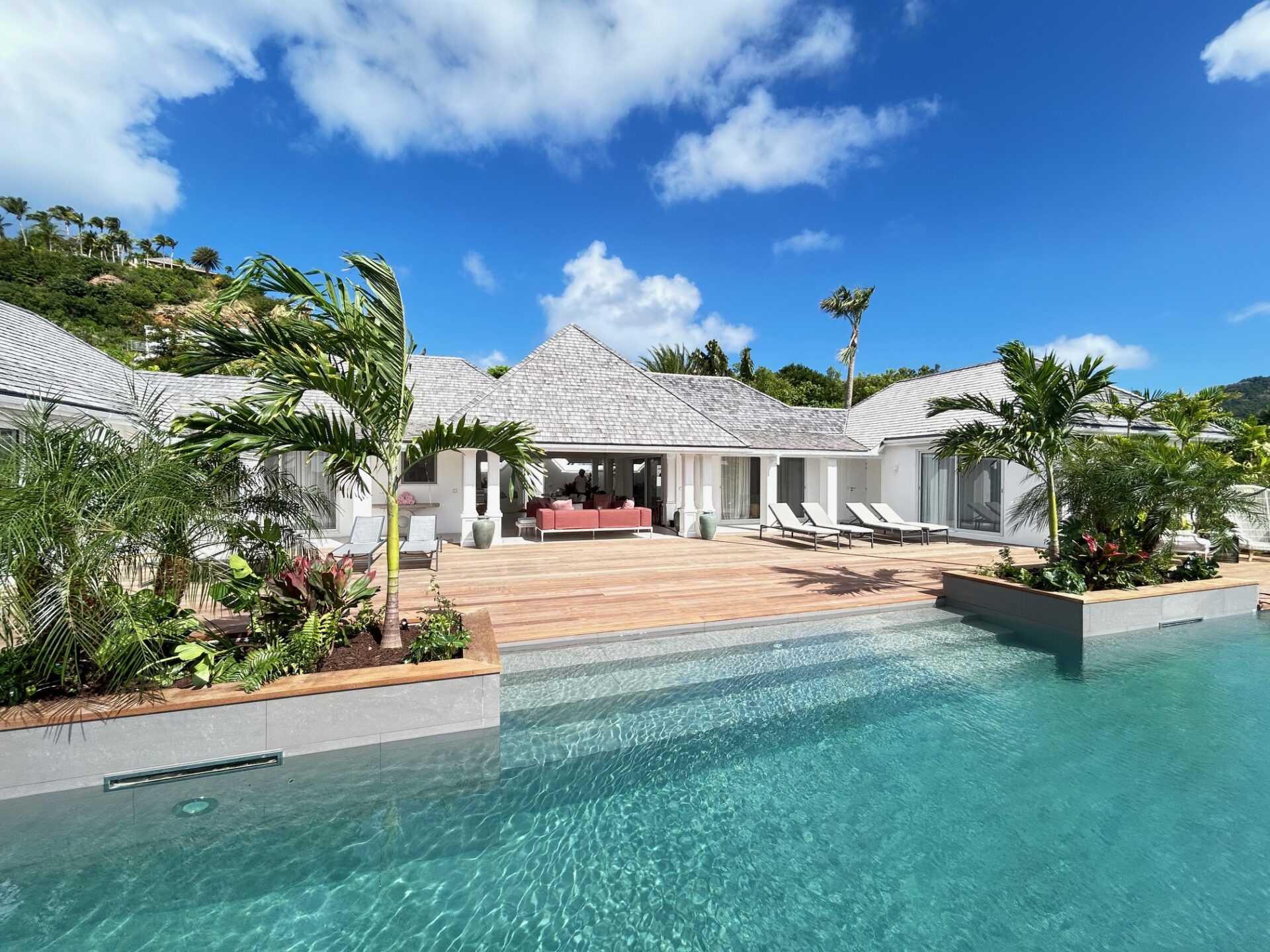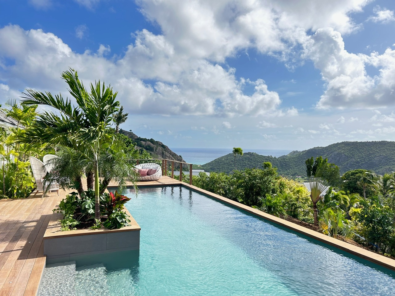 Esta espaçosa villa de 4 quartos mais um quarto de crianças tem vista para o mar e para as belas paisagens de Saint-Barthélémy.