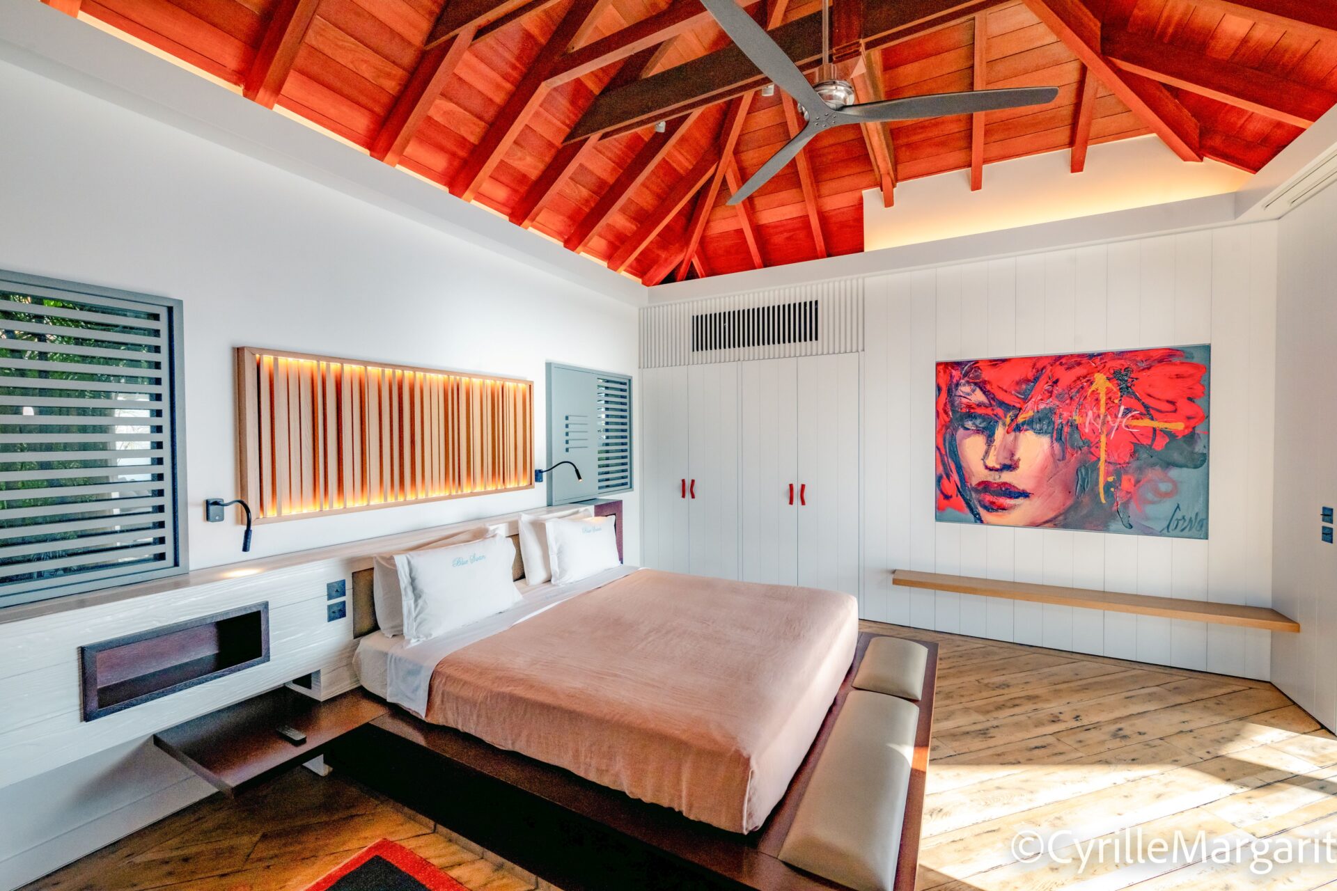 Espaçosa e muito privativa, Blue Swan oferece um amplo deck com piscina infinita, e cada um dos 3 quartos master fica em seu próprio bangalô, sendo o outro (um quarto mais pequeno) acessível pelo parking.