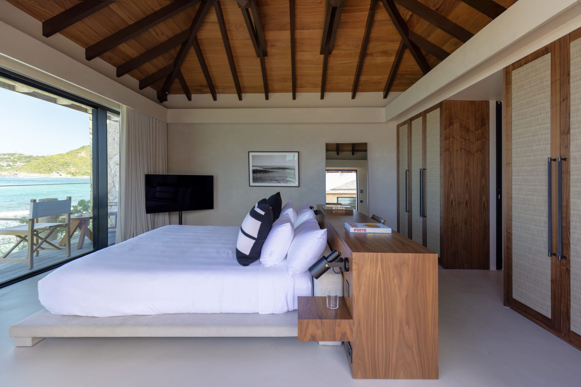 Ambas as suítes ficam de frente para o mar, enquanto as outras duas ficam ao lado da piscina e são um pouco menores.