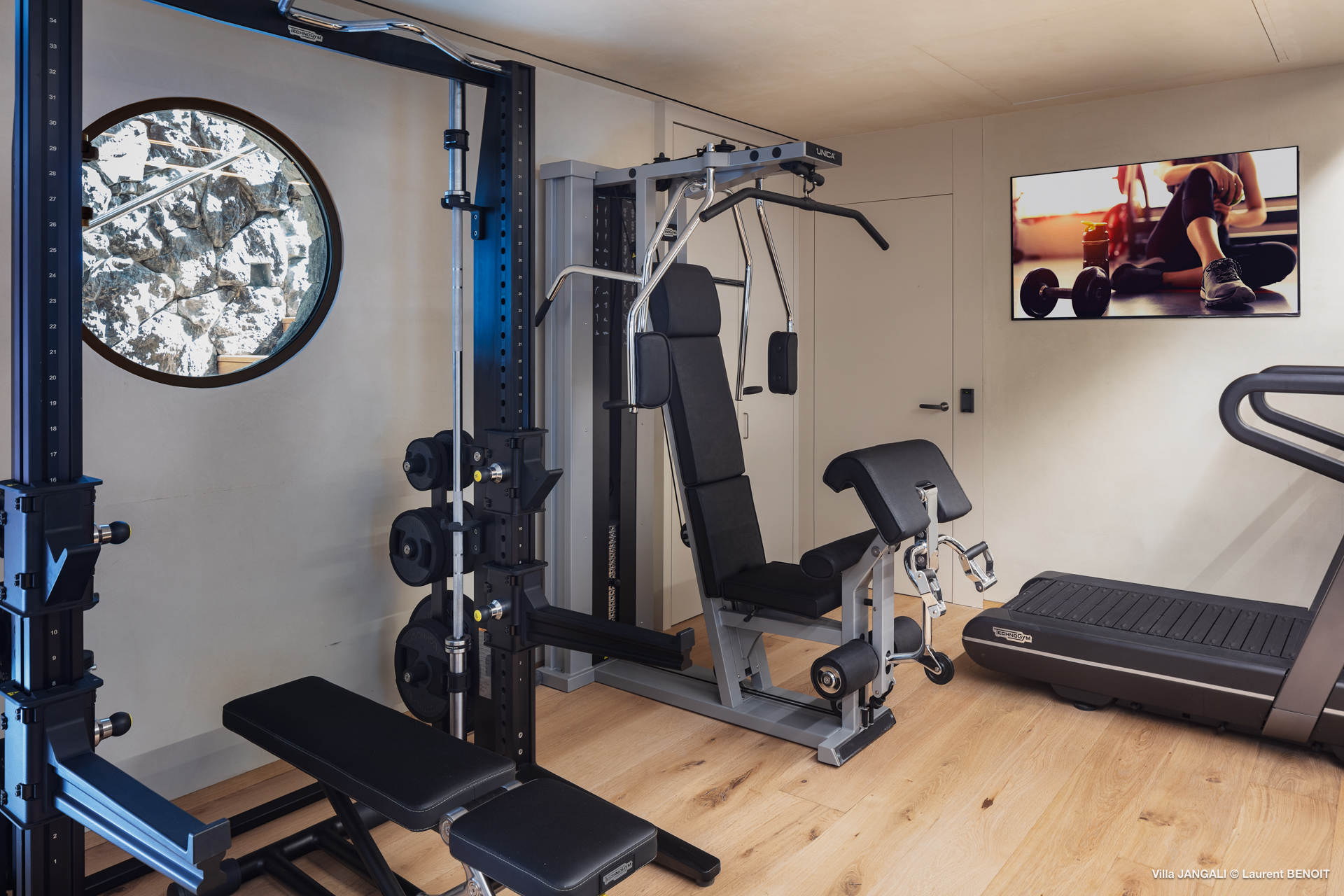 Dispõe ainda de uma sala de tv, fitness, uma garagem/espaço para discoteca e um hammam.