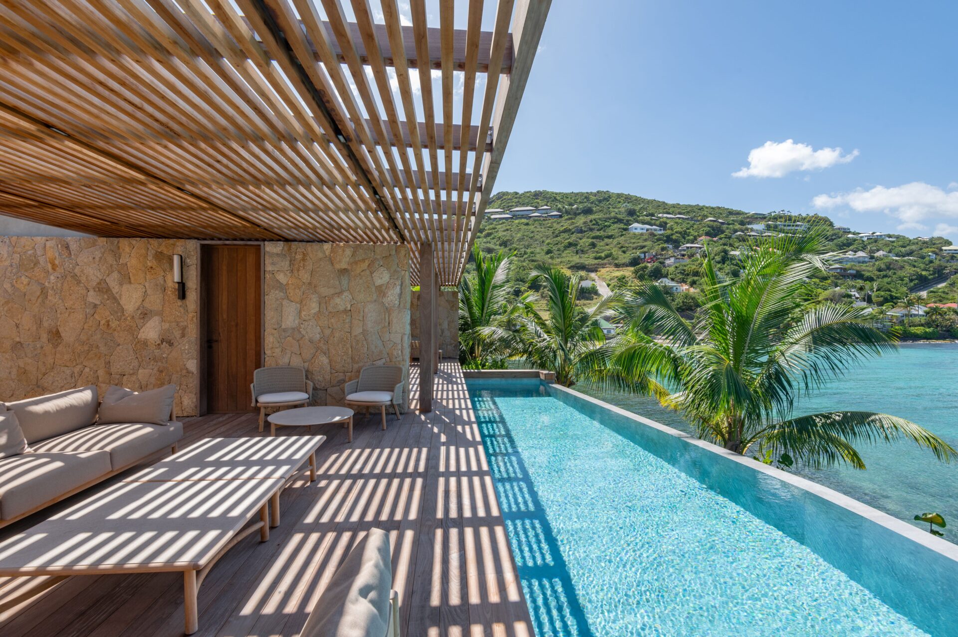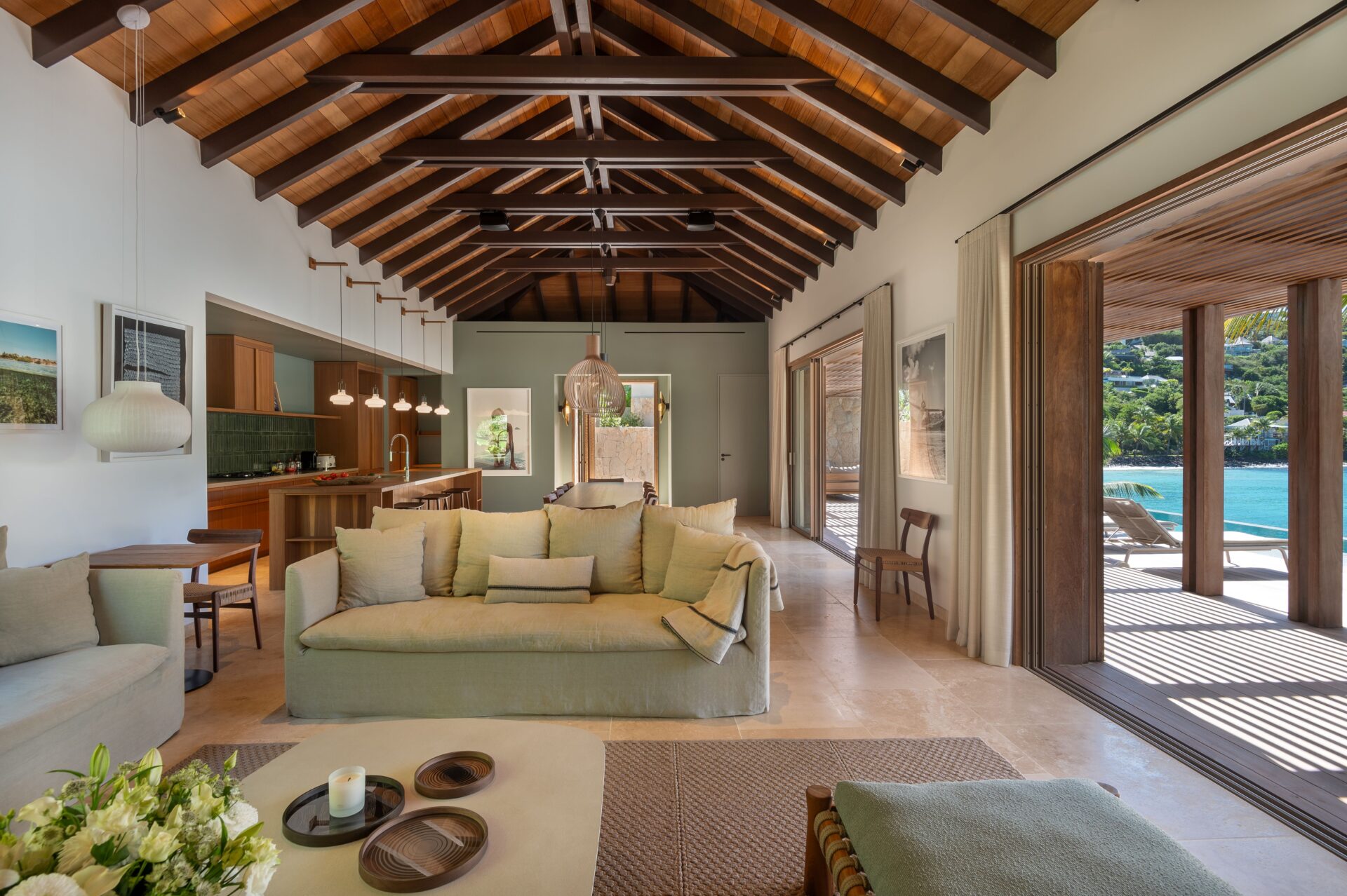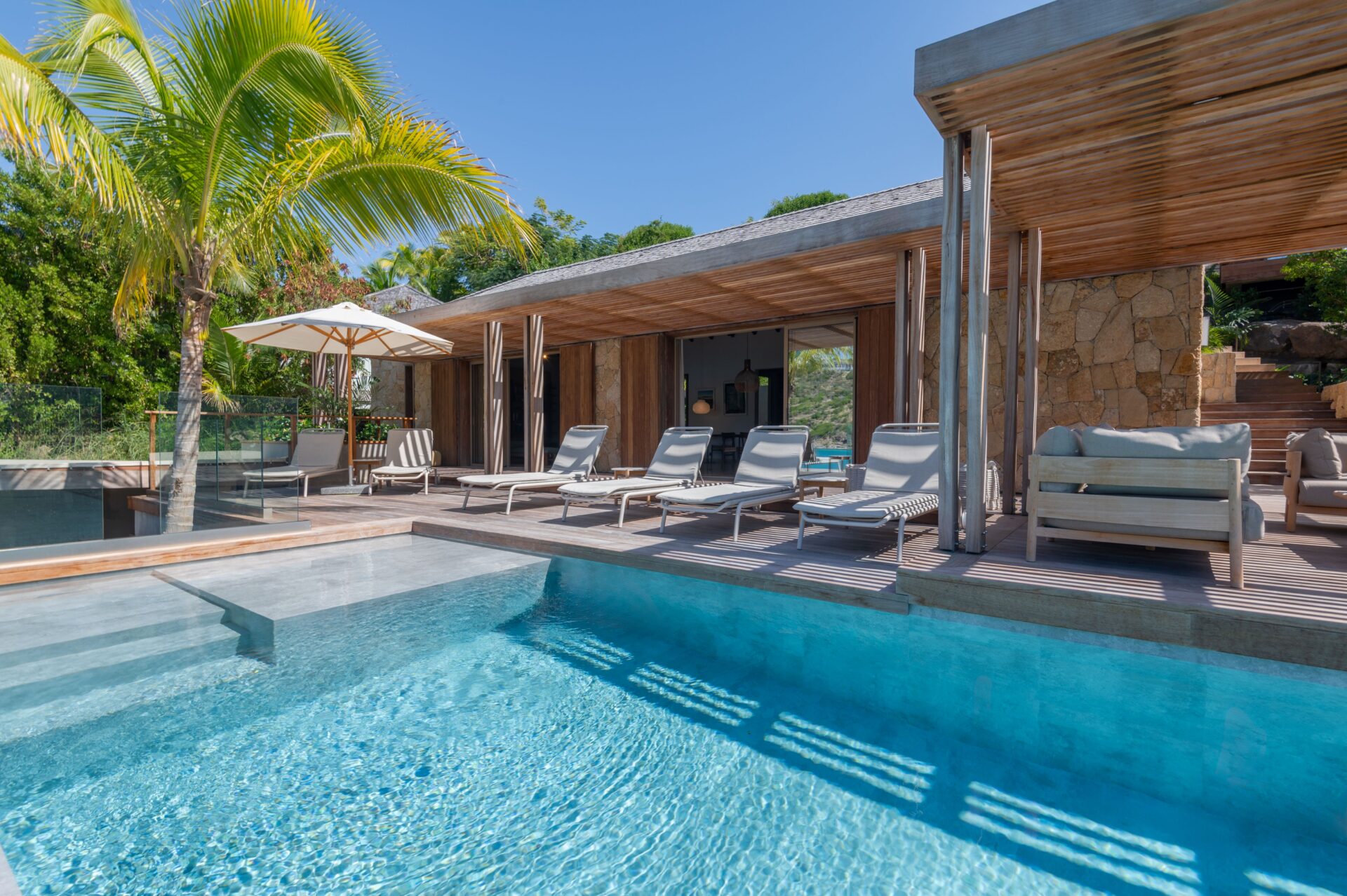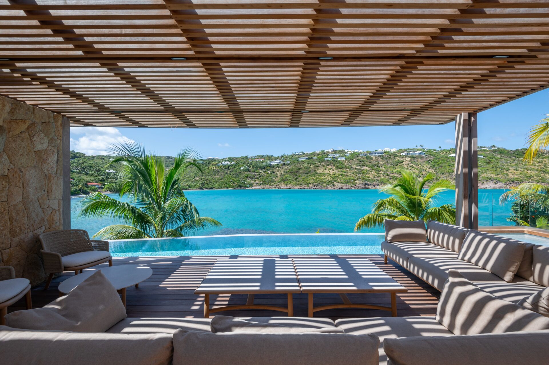 Magnífica villa de 5 quartos na baía de Marigot, com praia e acesso direto ao mar.