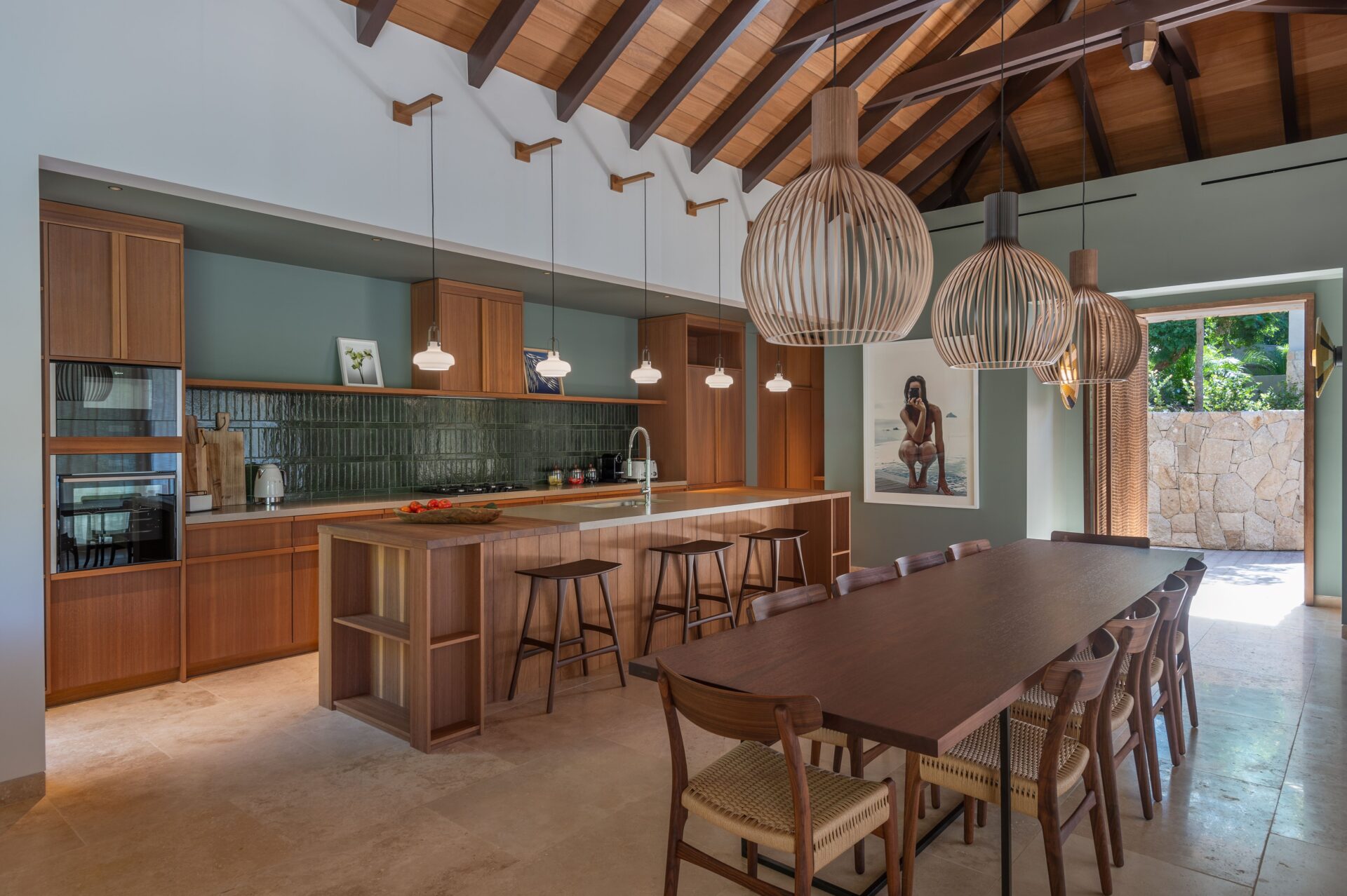 Recém-construída, esta propriedade é composta por sala de estar com cozinha, uma incrível área externa com piscina em frente ao mar e 5 quartos, sendo a suíte principal próxima à piscina e à sala de estar, e os demais em um nível superior.