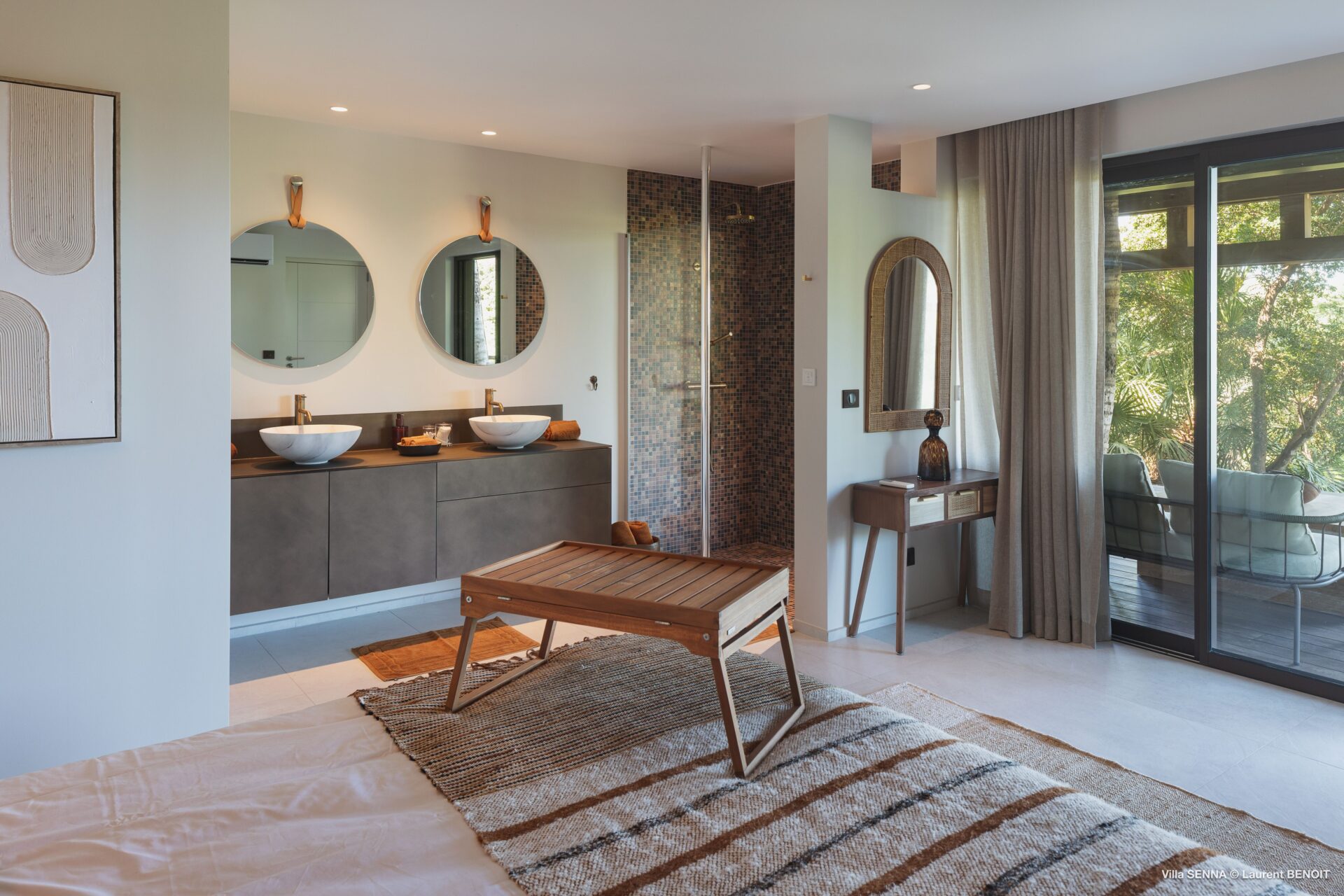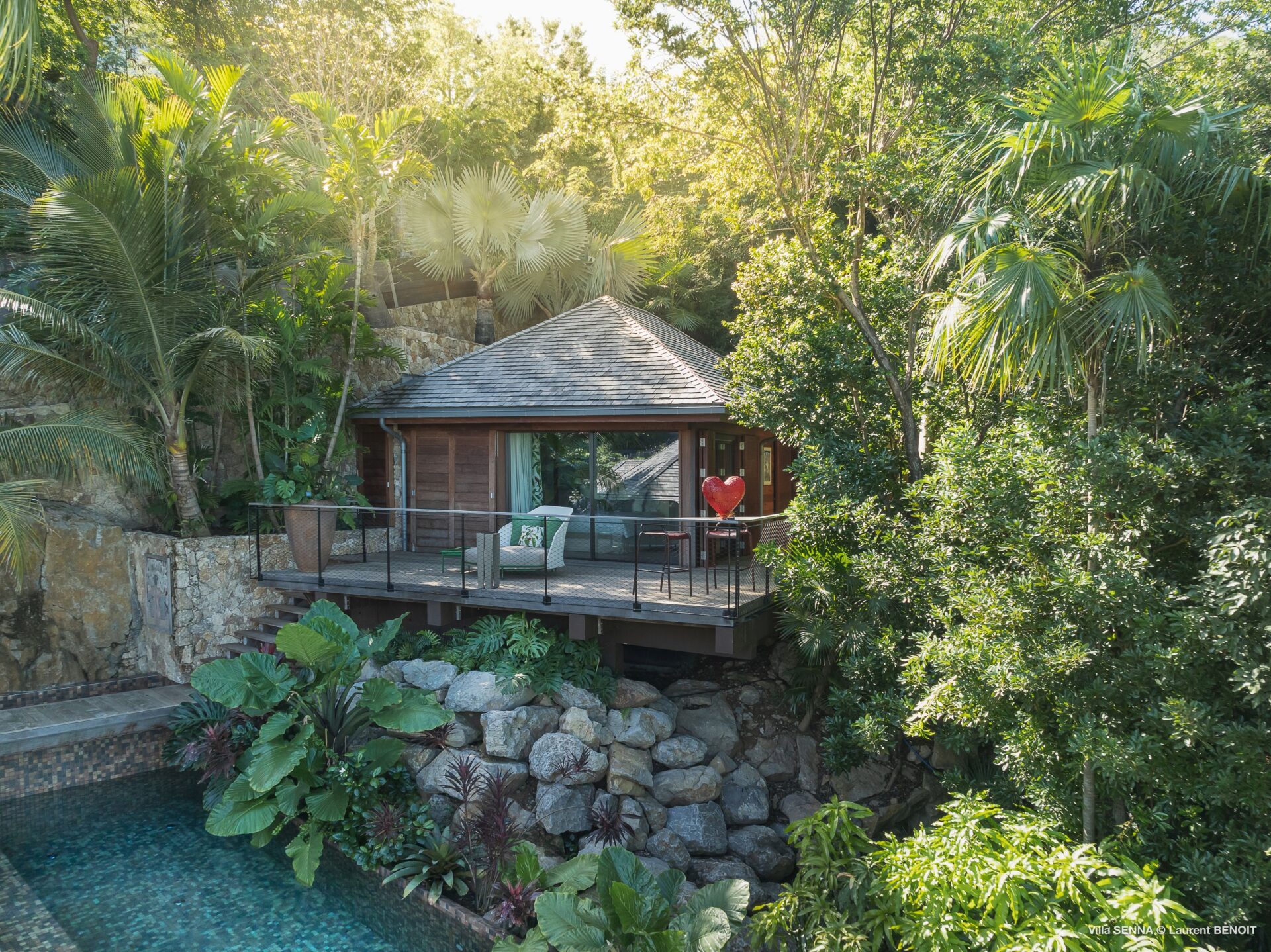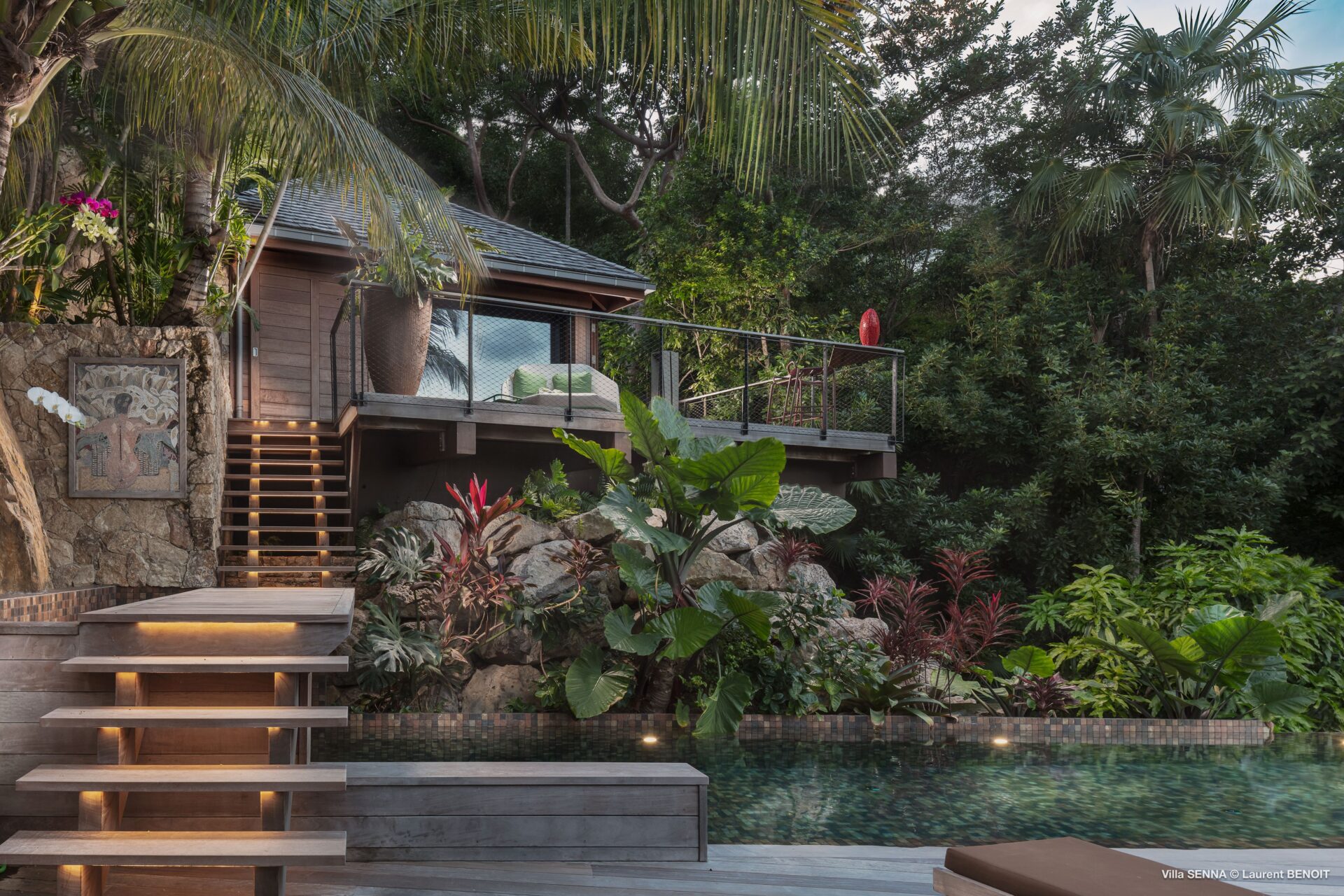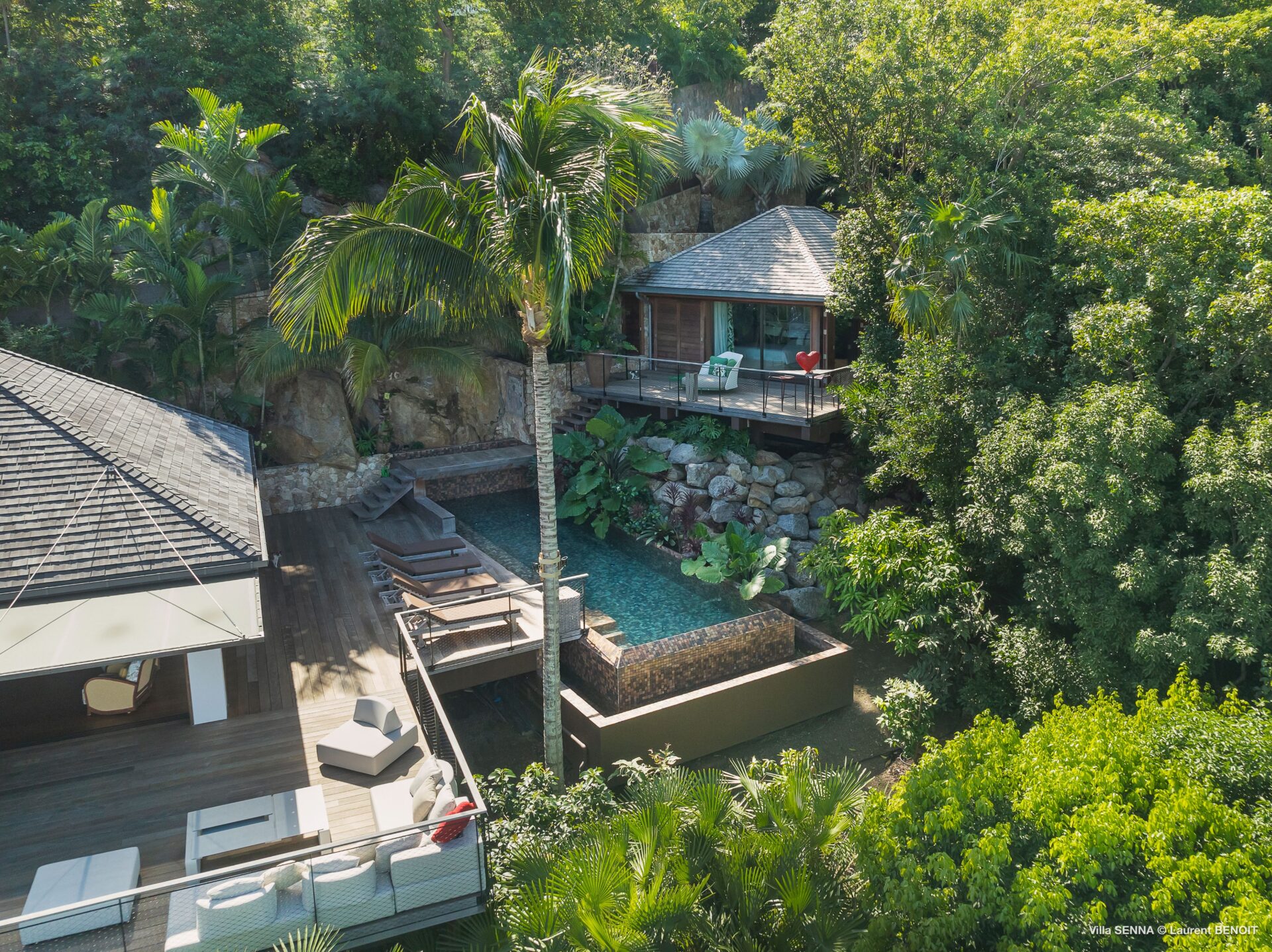 Uma segunda suíte está localizada em um bangalô separado, situado um pouco acima na propriedade.