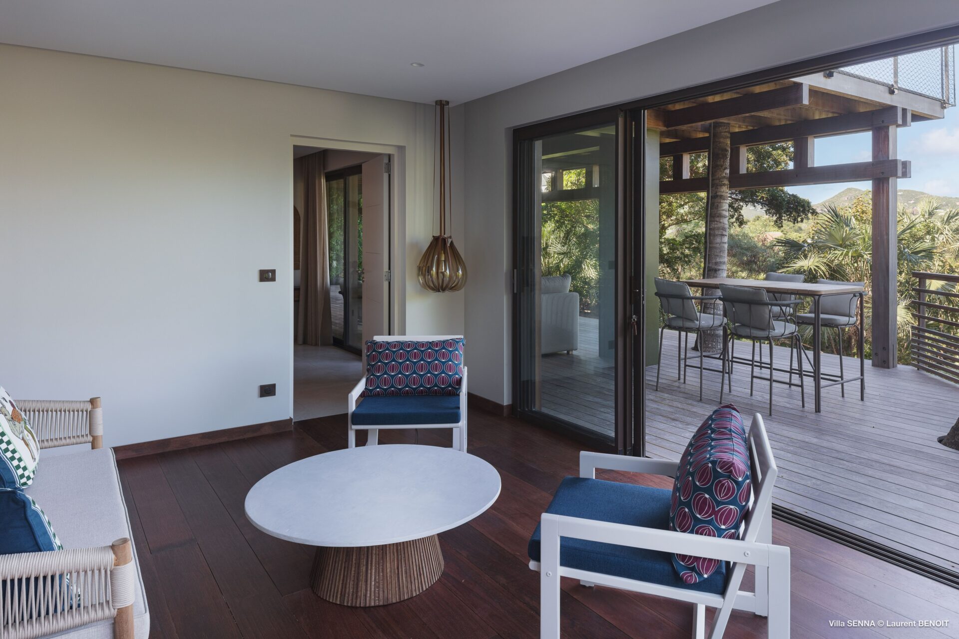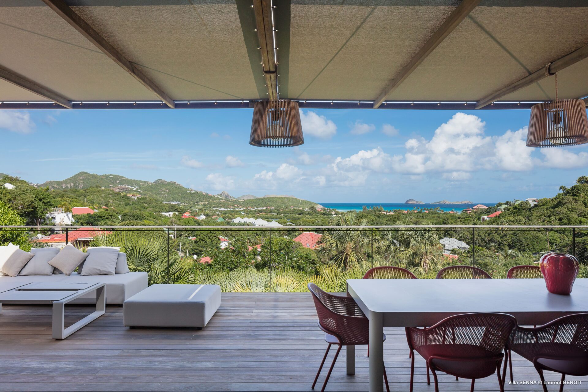 Nova villa de 4 quartos mais 1 quarto de crianças nas colinas de St Jean com vista para o mar.