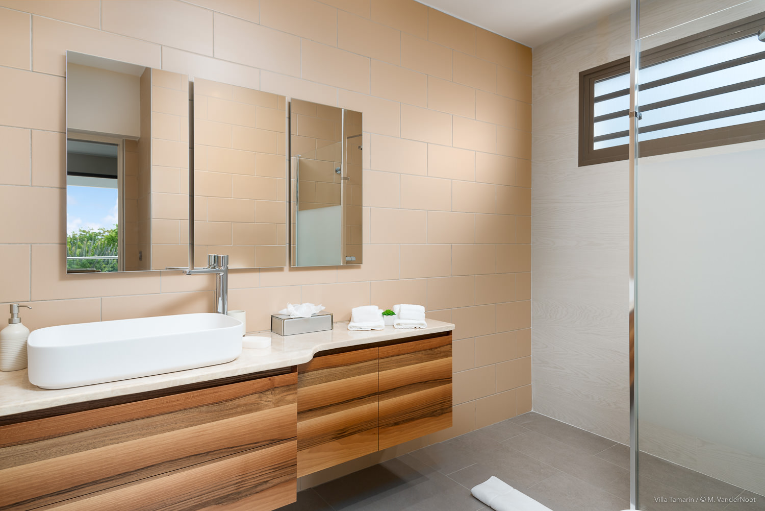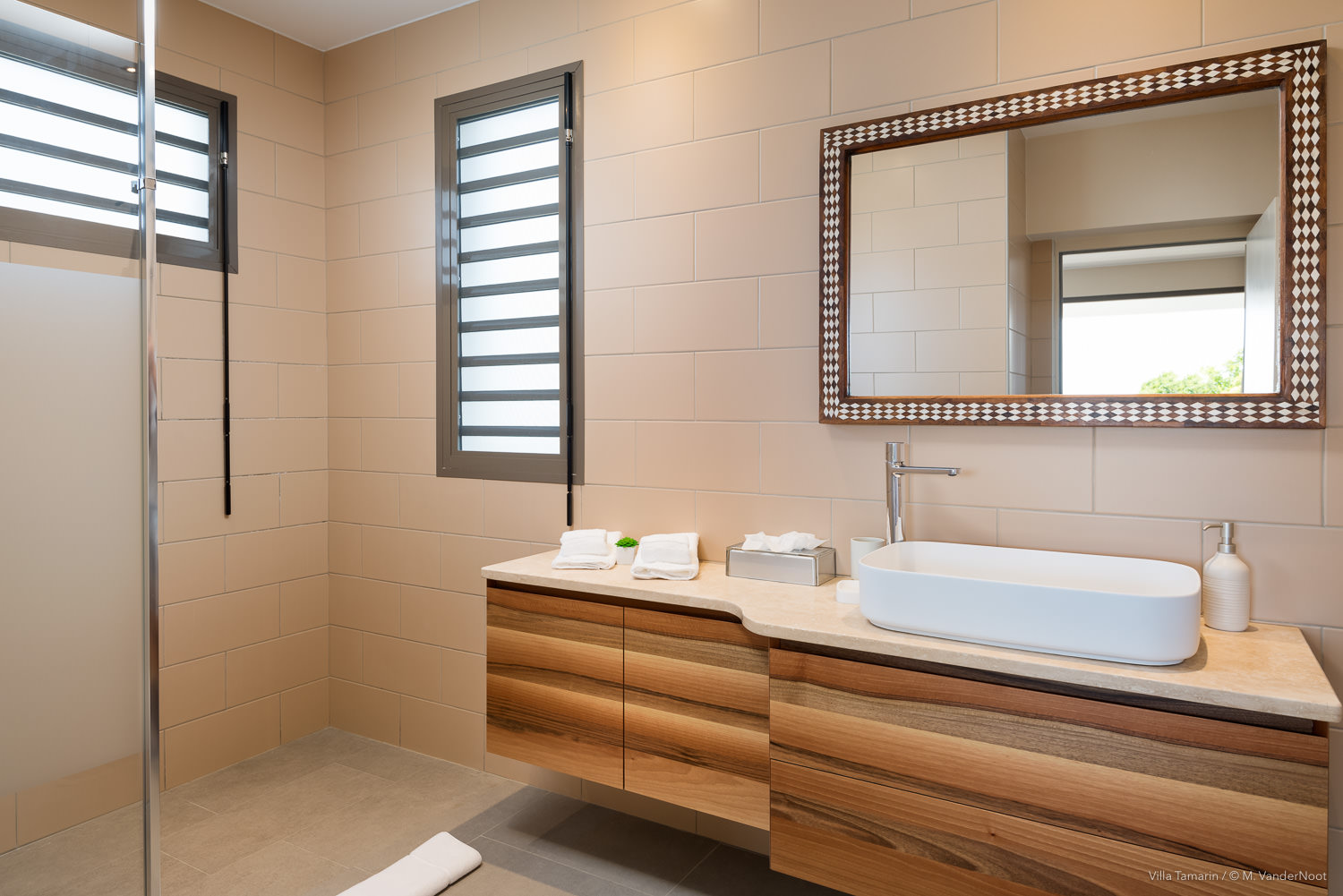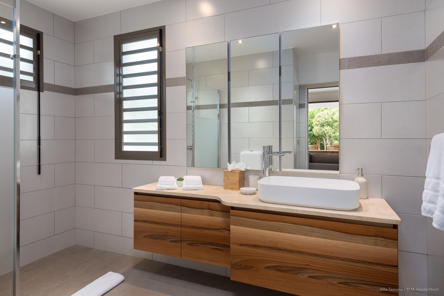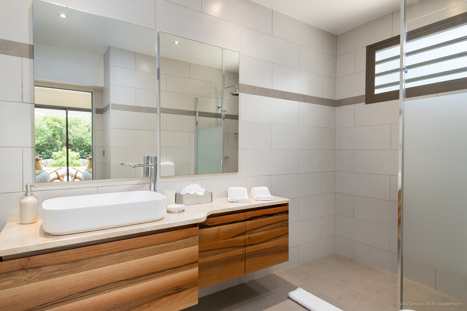Composta por 1 quarto, sala de estar e cozinha no rés-do-chão, bem como pela área de estar exterior com piscina, e no piso superior, acessível pelo exterior, outra sala de estar com cozinha e 2 quartos.