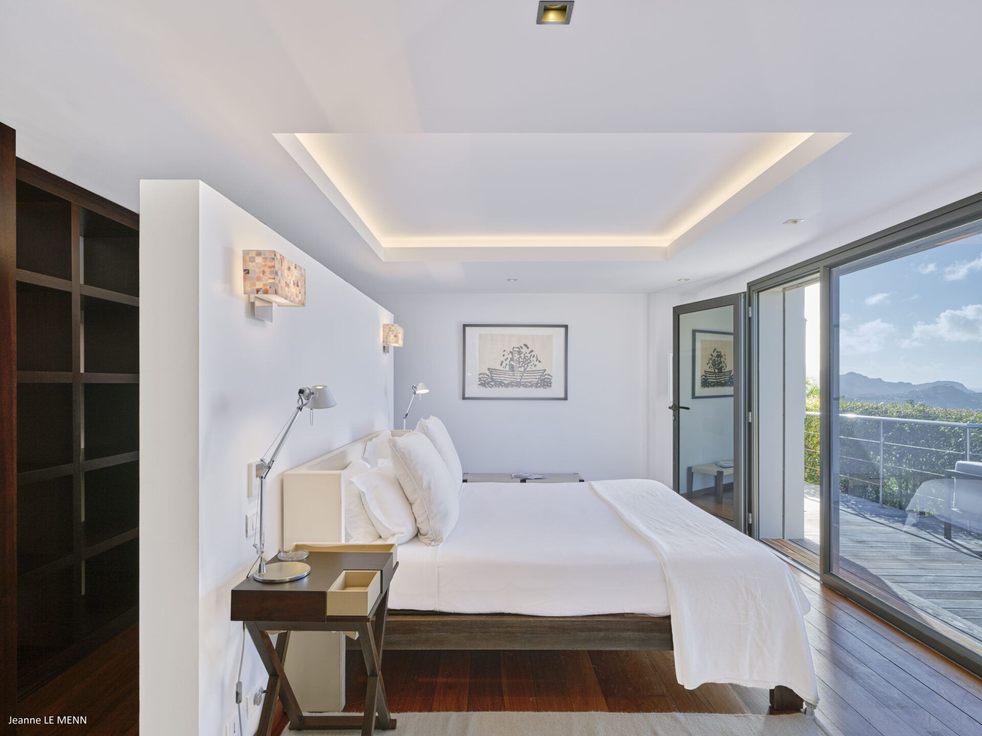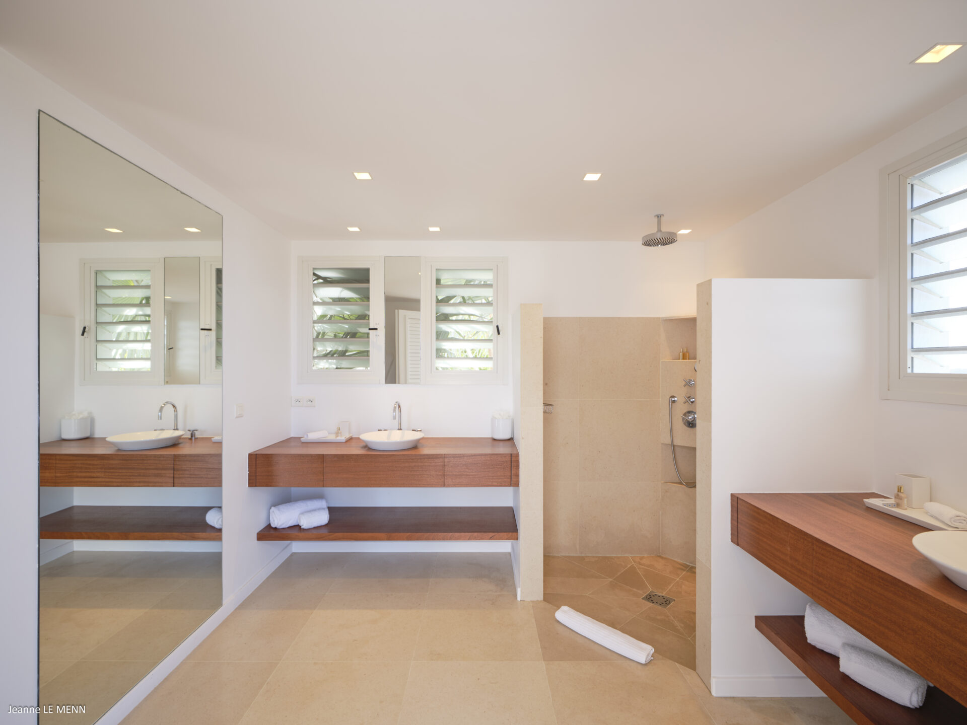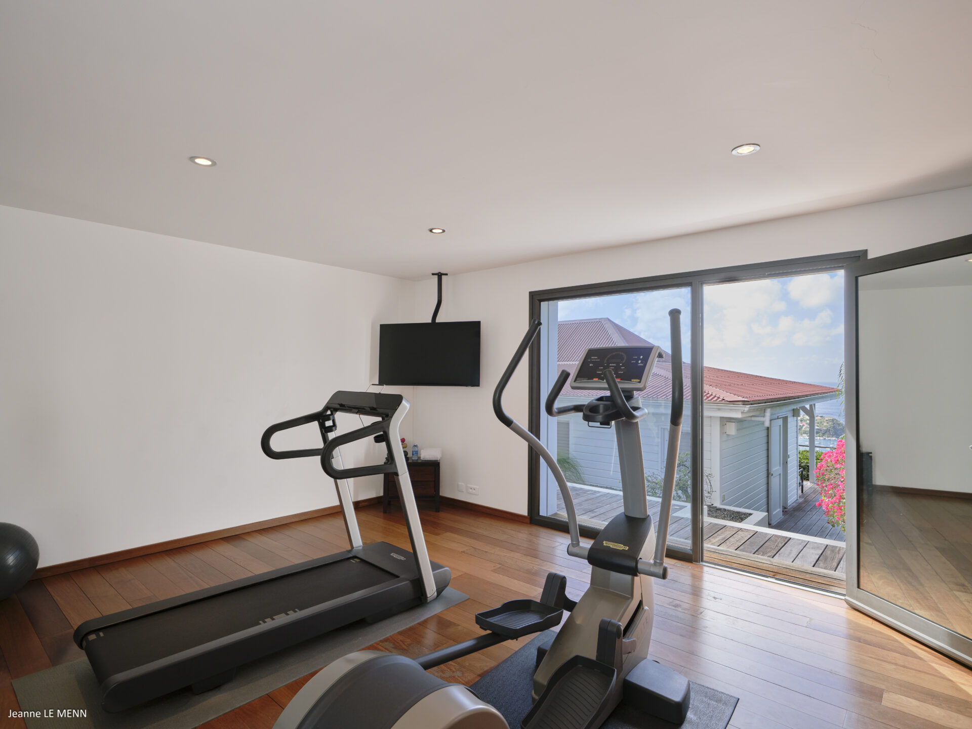 No nível inferior, 2 quartos (1 com jacuzzi exterior) e uma sala de fitness.
