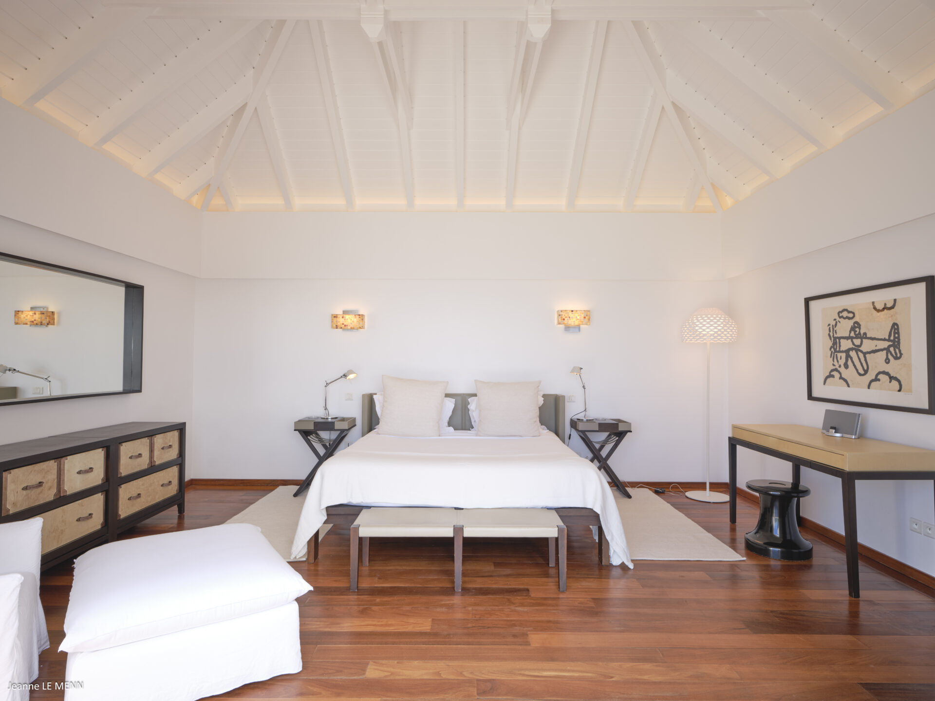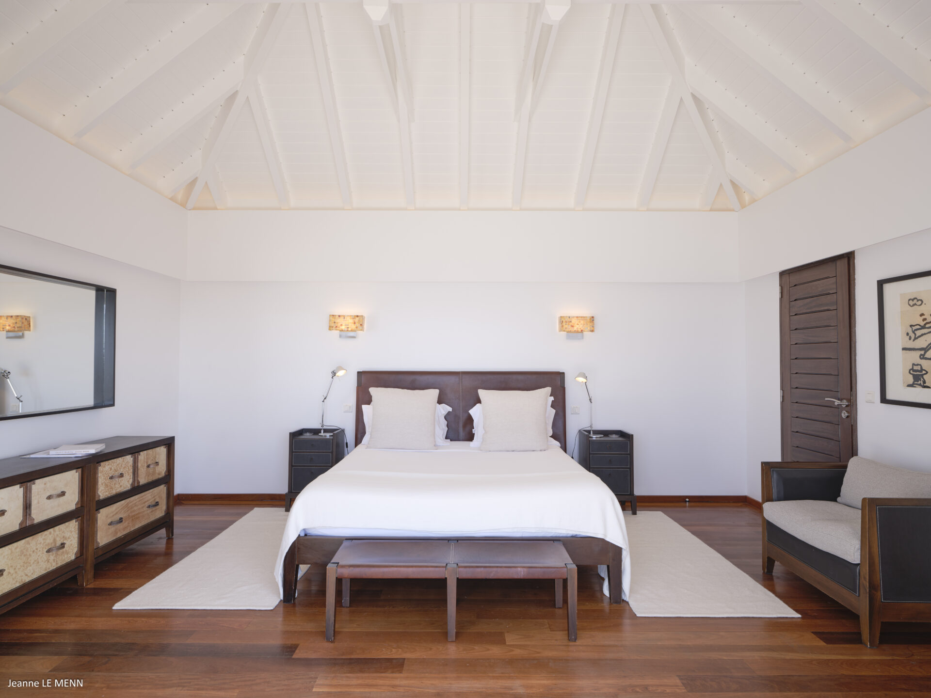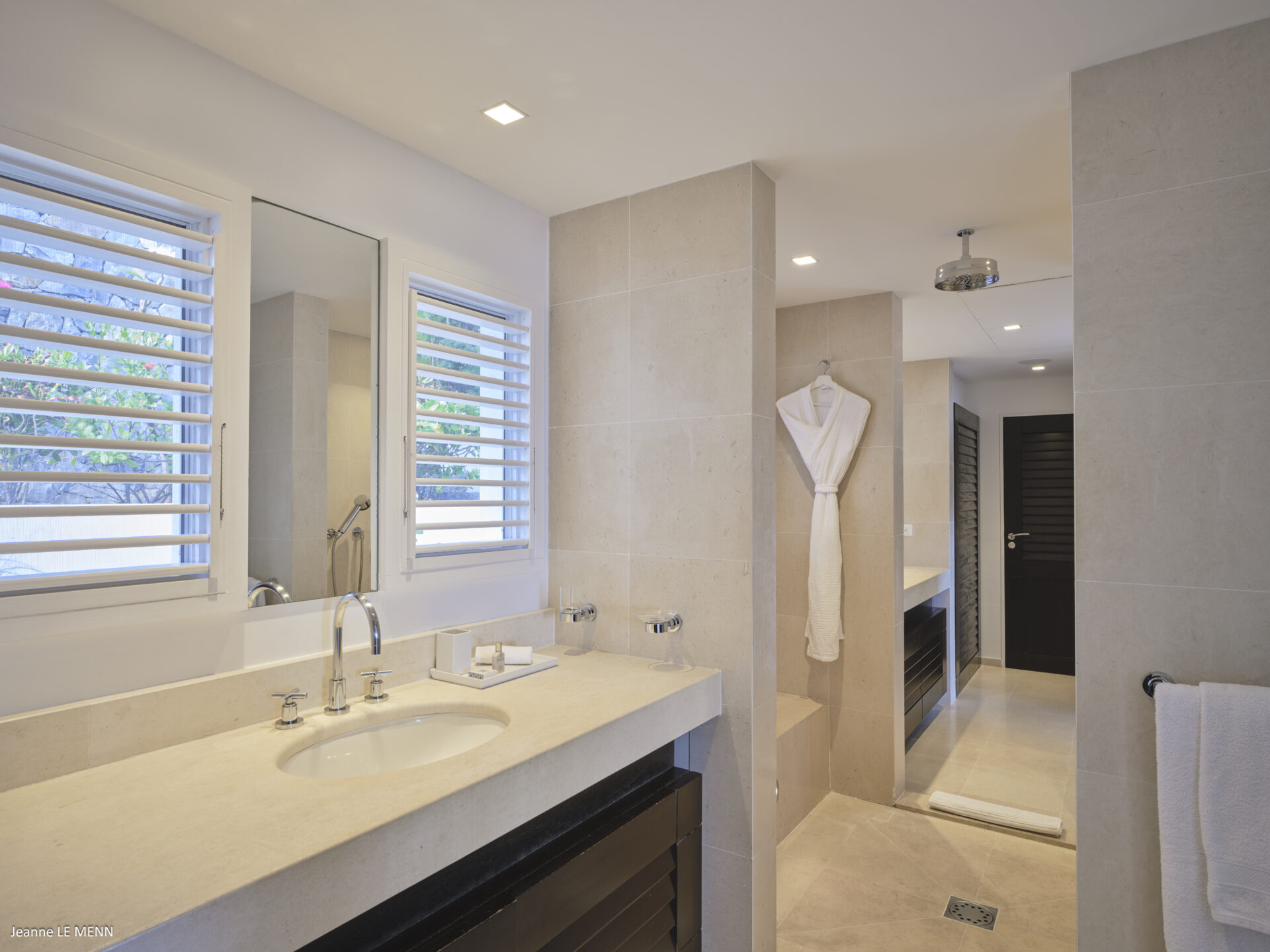 No nível inferior, 2 quartos (1 com jacuzzi exterior) e uma sala de fitness.